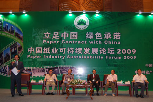 在新中國成立60年之際,中國紙業(yè)也經(jīng)歷了60載春秋的成長與發(fā)展。從建國初期的年產(chǎn)不足百萬噸一躍而成2008年的八千萬噸,從以前依賴進(jìn)口到現(xiàn)在的世界第二大造紙生產(chǎn)國,中國造紙行業(yè)經(jīng)歷了從無到有、點(diǎn)滴積累到奮發(fā)圖強(qiáng)的光榮歷程。然而,在當(dāng)前世界經(jīng)濟(jì)形勢(shì)持續(xù)低迷、自然資源緊缺、環(huán)境污染的多重壓力下,中國紙業(yè)如何能突出重圍走出一條有中國特色的可持續(xù)發(fā)展之路,成為了本次論壇交流和討論的焦點(diǎn)。另外,論壇以中國紙業(yè)可持續(xù)發(fā)展為切入點(diǎn),通過全體大會(huì)和對(duì)話的形式,分別從宏觀經(jīng)濟(jì)、行業(yè)政策發(fā)展及環(huán)境保護(hù)等角度就造紙業(yè)是否能夠做到環(huán)境友好和人工林是林紙循環(huán)的關(guān)鍵環(huán)節(jié)等話題進(jìn)行開放性討論。