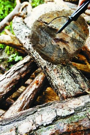 受到蟲害的馬尾松切面會(huì)出現(xiàn)藍(lán)斑。