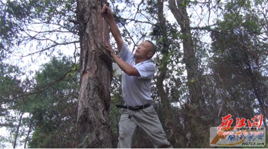 說(shuō)起五哥的導(dǎo)鉤松油的手藝,就像五哥的為人一樣,方圓鄰近認(rèn)識(shí)他的人,都無(wú)不豎起大拇指。4個(gè)山頭,400多棵松樹,五哥每天只用4個(gè)小時(shí)左右,“比同村同樣干這行,而松樹只有200多的阿四,還要早到家。”