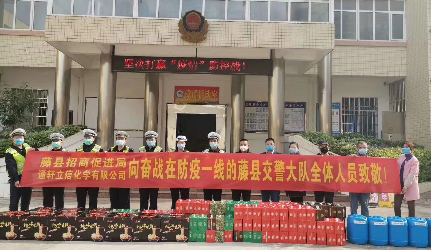 廣西藤縣通軒立信化學(xué)有限公司 向奮戰(zhàn)在防疫一線的藤縣交警大隊捐贈防疫物資