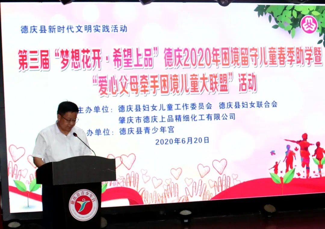 在20日當(dāng)日的活動(dòng)中,周啟斌先生作重要講話。他說:今年是中央政府全面打贏扶貧脫貧攻堅(jiān)之年,是全面建成小康社會(huì)目標(biāo)實(shí)現(xiàn)之年。讓中國幾千萬人全部脫貧,責(zé)任之大、任務(wù)之重前所未有。這就需要我們所有人都能夠伸出援手扶一把,特別是幫助那些貧困家庭的孩子們,資助他們繼續(xù)求學(xué)讀書,讓讀書求知之路一個(gè)都不能少!但是,新年伊始,一場突如其來的新型冠狀肺炎疫情在全國直至全球迅速蔓延,讓我們每個(gè)人身臨其中,經(jīng)歷了一場難以忘懷的“戰(zhàn)疫”,給每個(gè)人、每個(gè)家庭的生活、工作都帶來了不同程度的影響,企業(yè)停工停產(chǎn),學(xué)校停課,尤其給臨近中高考的學(xué)生們帶來了挑戰(zhàn)?,F(xiàn)在國內(nèi)的疫情在政府的有力的管控下取得了突破性的進(jìn)展,各年級(jí)的學(xué)生也相繼走回了校園,我們欣喜地看到孩子們好像突然之間長大了很多,疫情雖然阻擋了他們學(xué)習(xí)知識(shí)的進(jìn)度,但是沒有阻擋他們成長的步伐。所謂少年強(qiáng)則國家強(qiáng),關(guān)愛孩子,就是關(guān)心祖國的未來。孩子是祖國的花朵,兒童是民族的未來,讓他們健康、快樂地成長,是我們義不容辭的責(zé)任。為了把美好的牽掛化作實(shí)實(shí)在在的行動(dòng),我公司和我本人協(xié)同社會(huì)的一些熱心人士,共同伸出援手,在德慶縣婦聯(lián)的大力支持下,共建“夢想花開·希望上品”關(guān)愛德慶困境兒童公益項(xiàng)目,以此舉拋磚引玉、希望能夠吸引更多的社會(huì)各界熱心人士奉獻(xiàn)愛心,將該項(xiàng)公益活動(dòng)不斷發(fā)展壯大,讓更多的困境兒童受益!贈(zèng)人玫瑰,手留余香!希望我們共同伸出友愛的雙手,去愛護(hù)、去支持身陷困境中的孩子,讓他們也同樣放飛夢想,收獲希望!