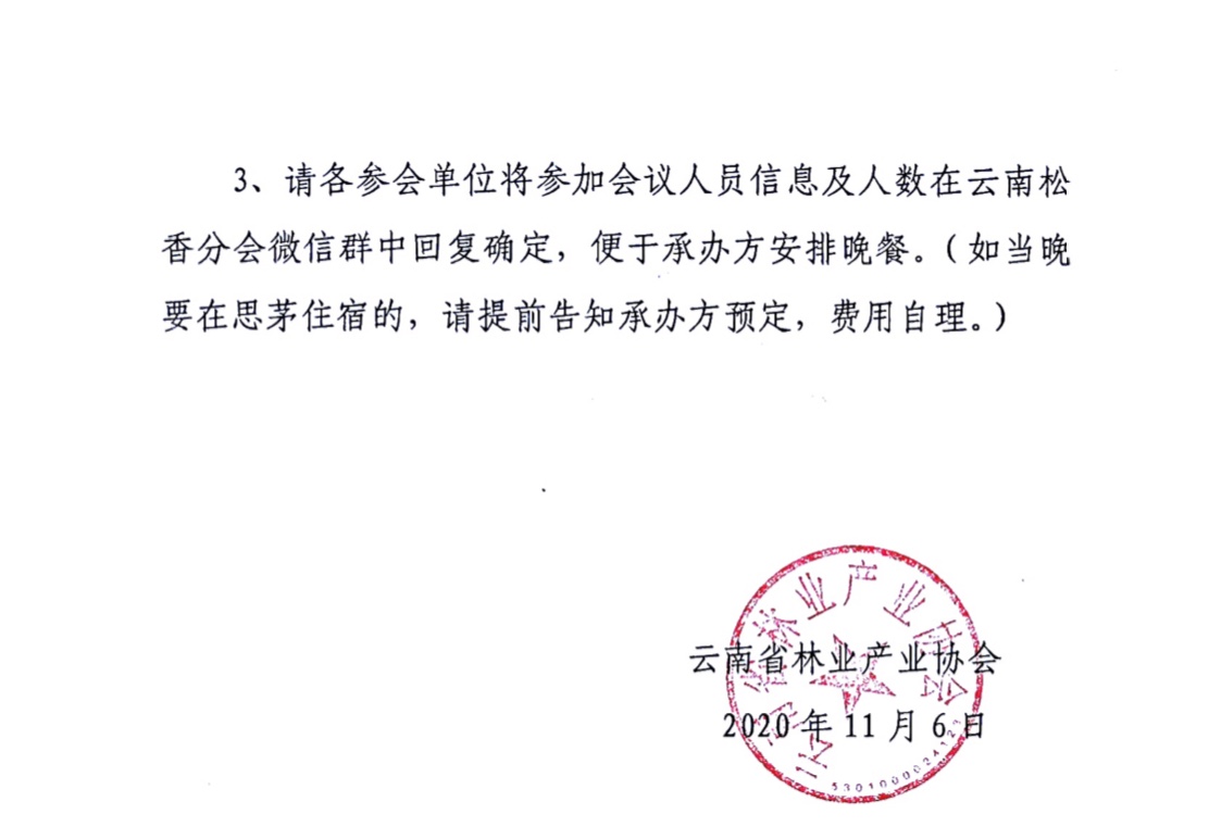 關(guān)于召開2020年云南省林業(yè)產(chǎn)業(yè)協(xié)會(huì)松香分會(huì)會(huì)員大會(huì)的通知