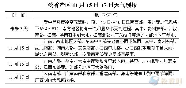 華訊松香網(wǎng)溫馨提醒:未來三日,受中等強(qiáng)冷空氣影響,多數(shù)產(chǎn)區(qū)將迎降溫降雨天氣,其中江南、華南等地大部區(qū)域有中到大雨,局地暴雨。另未來十天,多數(shù)產(chǎn)區(qū)降溫降雨現(xiàn)象仍較頻繁,采脂工人上山積極性或會(huì)受影響,局地提前下山情況增多可能性較大。