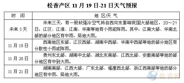 華訊松香網(wǎng)溫馨提醒:未來三日,新一股較強(qiáng)冷空氣將自西向東影響我國,江南大部、華南地區(qū)有小到中雨或陣雨,局地大雨,上山采脂工人需注意天氣變化,合理安排采收。據(jù)天氣預(yù)報(bào)網(wǎng)報(bào)道,預(yù)計(jì)未來10天,影響我國的冷空氣活動(dòng)較頻繁,北方地區(qū)氣溫起伏多變;江淮、江南等地氣溫較常年同期偏低1-2℃,對(duì)松樹出脂率略有影響,采脂工人的積極性或降低。