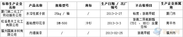福建省2013年第一季度工業(yè)產(chǎn)品質(zhì)量監(jiān)督抽查不合格產(chǎn)品及生產(chǎn)企業(yè)名單