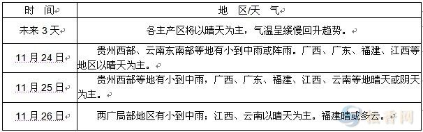 華訊松香網(wǎng)提醒:未來三天,各松香產(chǎn)區(qū)以晴天為主,氣溫呈緩慢回升趨勢(shì)。湖北、貴州等地產(chǎn)季基本結(jié)束,兩廣、福建、江西等產(chǎn)區(qū)接近尾期,晴好天氣利于松脂的采收和運(yùn)輸。