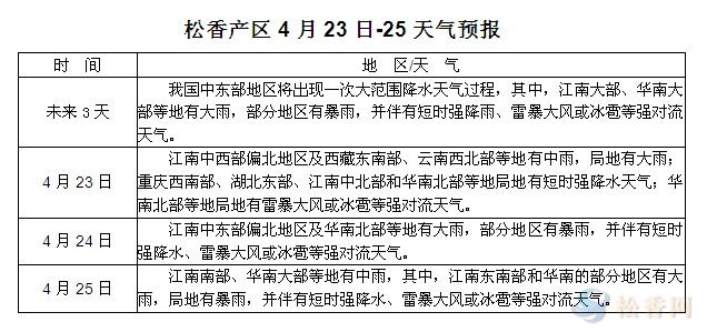 松香產(chǎn)區(qū)4月23日-25日天氣預(yù)報