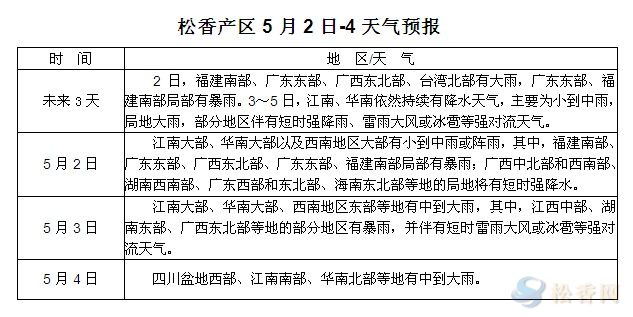 華訊松香網(wǎng)提醒:未來三天,江南華南地區(qū)的降水將進(jìn)一步減弱,粵桂閩局部大到暴雨。另各產(chǎn)區(qū)陸續(xù)進(jìn)入夏季,日間氣溫較高,請(qǐng)上山人員注意晝夜溫差。