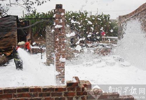 消防官兵用泡沫滅火。南國(guó)早報(bào)記者 唐輝吉攝