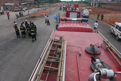指揮員根據(jù)現(xiàn)場(chǎng)情況,組織官兵疏散工廠一旁居民樓內(nèi)群眾,并且立即設(shè)置3組水槍陣地,從工廠西面出擊滅火,阻止火勢(shì)向南面的蔓延趨勢(shì)。此時(shí)江南、沙井中隊(duì)相繼到達(dá)現(xiàn)場(chǎng),投入到滅火戰(zhàn)斗中。支隊(duì)全勤指揮部再調(diào)集朝陽(yáng)、高新、北湖、 新陽(yáng)中隊(duì)趕赴現(xiàn)場(chǎng)增援。