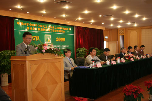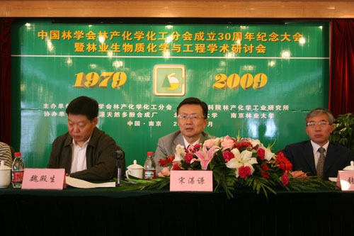 中國林學(xué)會林產(chǎn)化學(xué)化工分會(以下簡稱林化分會)成立三十周年紀(jì)念大會暨林業(yè)生物質(zhì)化學(xué)與工程學(xué)術(shù)研討會于2009年10月17~18日在南京召開。會議由中國林科院副院長、林化分會副理事長儲富祥主持,中國林科院林化所蔣劍春所長致歡迎辭,林化分會宋湛謙理事長致辭。參加此次會議的正式注冊代表120多名,分別為來自18個(gè)省市自治區(qū)的大學(xué)、科研院所、生產(chǎn)企業(yè)和市場貿(mào)易等方面的教授、專家、研究人員、企業(yè)家。在慶祝大會的開幕式會上到會會員200余名,共慶林化分會成立三十周年,特別是中國林科院林化所舉全所之力組織舉辦這次大會,并得到南京龍?jiān)刺烊欢喾雍铣蓮S、北京林業(yè)大學(xué)、南京林業(yè)大學(xué)、張家界貿(mào)源化工有限公司等單位的大力支持。參加慶典大會年齡最高的有86歲的老前輩,年齡最小的碩士研究生、博士生20多歲,可謂四世同堂,說明林化分會具有強(qiáng)大的生命力,這是興旺發(fā)達(dá)的標(biāo)志。