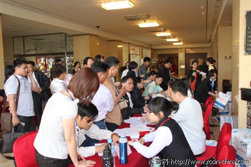 5月10日是“2010中國松香市場(chǎng)信息交流暨貿(mào)易洽談會(huì)”報(bào)到的日子,早上8:30分負(fù)責(zé)會(huì)議簽到的工作人員整裝就位,等待國內(nèi)外參會(huì)代表的到來。截止目前,印度,法國,英國的國外客戶已經(jīng)到達(dá)會(huì)議酒店,國內(nèi)參會(huì)企業(yè)陸續(xù)到達(dá),14:30分 迎來廣西企業(yè)報(bào)名高峰期。