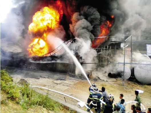 2010年11月2日下午2時(shí)58分,位于當(dāng)湖北省當(dāng)陽(yáng)市廟前鎮(zhèn)沙河村的森成林化有限責(zé)任公司,儲(chǔ)油罐區(qū)一個(gè)8噸松油池突發(fā)大火,附近3個(gè)儲(chǔ)油罐面臨威脅。當(dāng)陽(yáng)市消防官兵接報(bào)警后火速趕往現(xiàn)場(chǎng),耗時(shí)兩個(gè)半小時(shí)將大火撲滅。