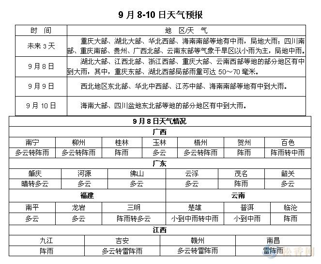 松香產(chǎn)區(qū)9月8-10日天氣預(yù)報(bào)