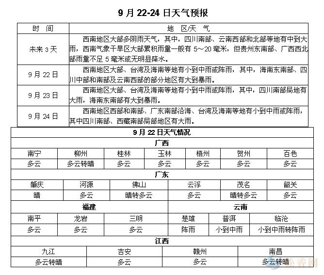 松香產(chǎn)區(qū)9月22-24日天氣預(yù)報