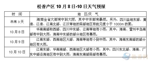松香產(chǎn)區(qū)10月8-10日天氣預報