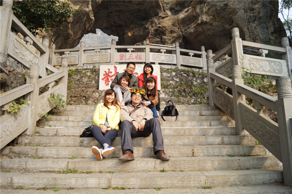 劉三姐的四妹、五妹在對歌臺前賣萌