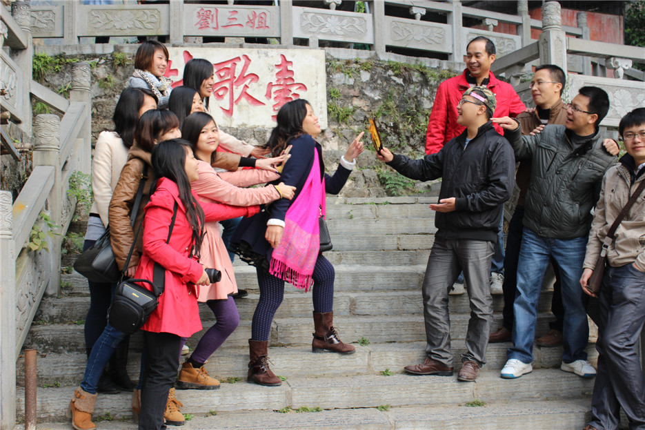 劉三姐的四妹、五妹在對歌臺前賣萌