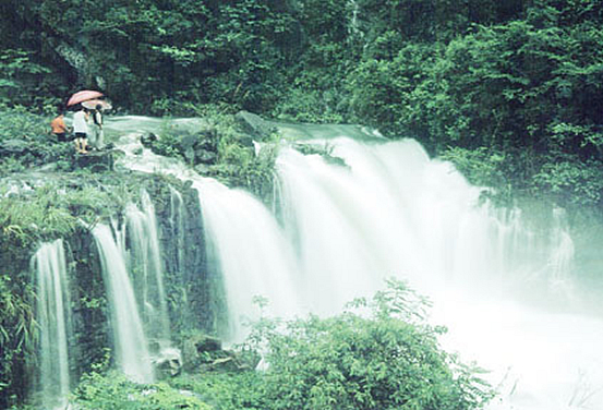 優(yōu)美的自然風(fēng)光:井岡山屬亞熱帶季風(fēng)氣候,四季分明,雨量充沛,年平均氣溫14.3度。井岡山風(fēng)景名勝區(qū)面積261.43平方公里,分為11個景區(qū),76處景點,460多個景物景觀。千峰競秀,萬壑爭流,蒼茫林海,飛瀑流泉,融雄、險、秀、幽、奇為一體,峰巒、山石、瀑布、溶洞、溫泉、珍稀動植物、高山田園風(fēng)光應(yīng)有盡有。既有氣勢磅礴的云海、奇妙獨特的飛瀑、瑰麗璀璨的日出、蜚聲中外的十里杜鵑長廊,又有享譽全球的黃洋界、茅坪八角樓以及被載入第四版百元人民幣背景圖案的井岡山主峰,更有全球同緯度迄今保存最完整的次原始森林7000公頃,還有一片被聯(lián)合國環(huán)境保護組織譽為全世界僅有的常綠闊葉林。井岡山環(huán)境優(yōu)美,風(fēng)光綺麗,空氣清新,每立方厘米空氣中含負氧離子數(shù)超過80000個,有的地方達到160000個,人稱"天然氧吧"。這里無污染,無噪音,森林覆蓋率達86%,生態(tài)環(huán)境極佳,超過國家一級標(biāo)準(zhǔn),是理想的旅游避暑療養(yǎng)勝地。當(dāng)年,朱德委員長重上井岡山時揮毫寫下了"天下第一山"的題詞;著名文學(xué)家郭沫若暢游井岡山后,感慨萬千,揮筆寫下了"井岡山下后,萬嶺不思游"的贊美詩句。