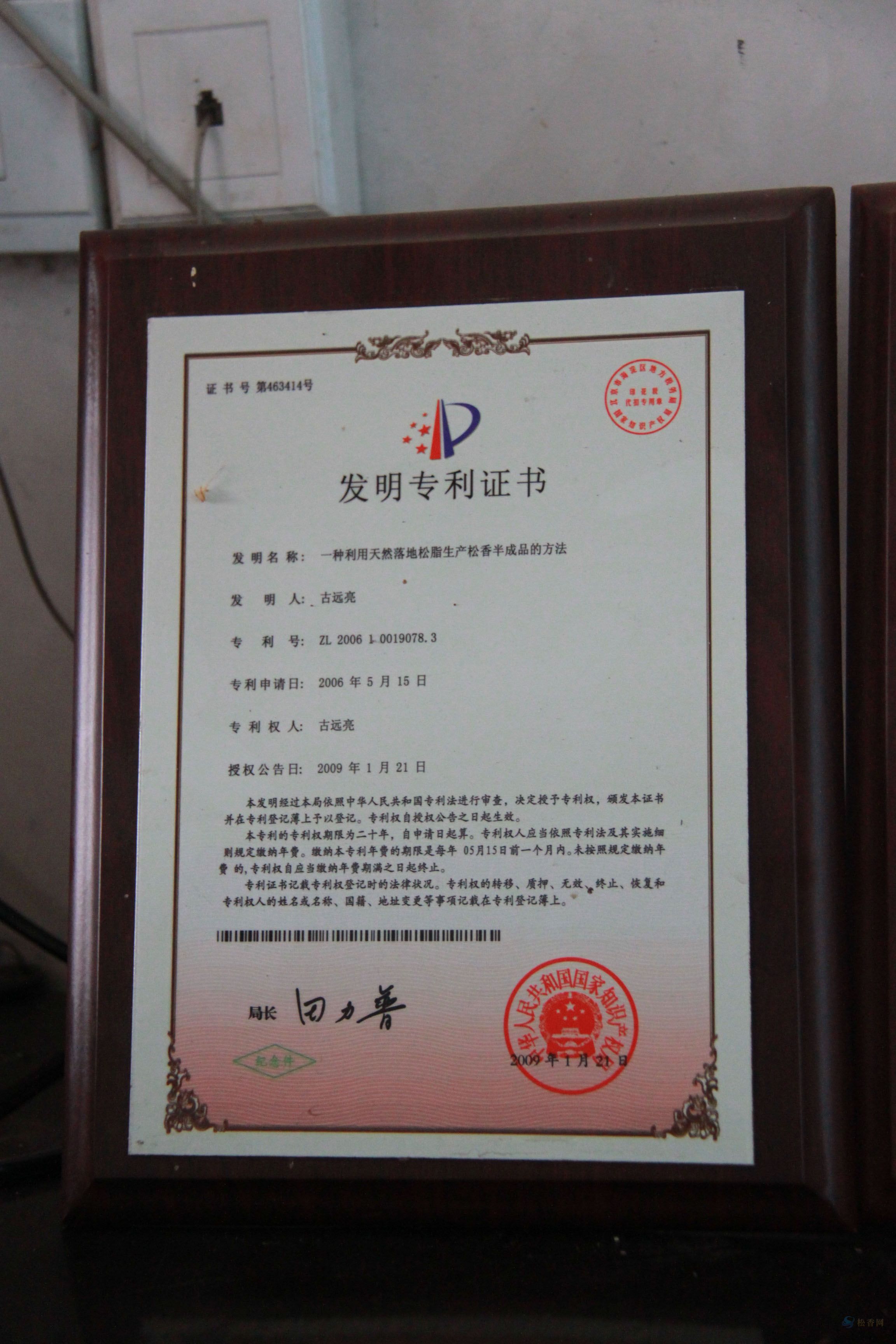 古遠(yuǎn)亮關(guān)于落地松脂生產(chǎn)松香半成品的技術(shù)專利聲明