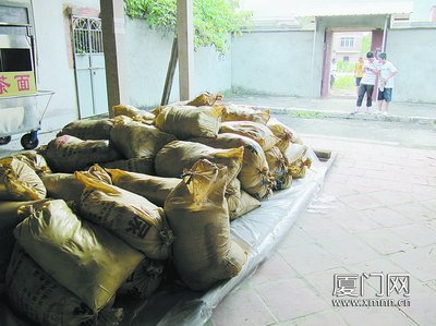 昨天記者在村里的祖厝看到了這些松脂,總共有70袋,每袋有100多斤。陳炳坤告訴記者,除了這些,山上還有4袋。“現(xiàn)在不清楚山上還有多少被盜的松脂,也不清楚之前是否已經(jīng)有松脂被運(yùn)走。”那四名工人稱,這是他們第一次將松脂收集起來,正準(zhǔn)備叫老板用車帶走,不過老板是誰“不是很清楚,我們只是給人干活的而已。”