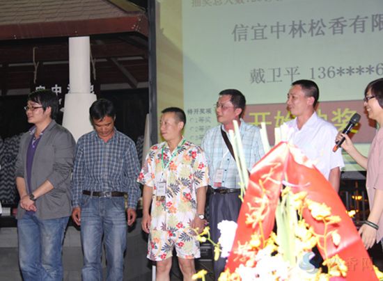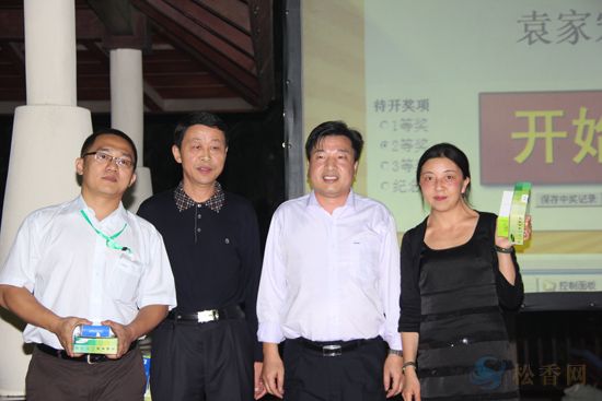 當(dāng)主持人華訊松香網(wǎng)主編仇志利女士宣布抽獎(jiǎng)即將開始時(shí),大家都相繼放下手中酒杯,期待神秘大獎(jiǎng)的揭曉。為確保公平公正,大會(huì)組委會(huì)特別設(shè)置了電子抽獎(jiǎng)系統(tǒng),隨機(jī)抽取獲獎(jiǎng)人員。隨著六名三等獎(jiǎng)、三名二等獎(jiǎng)得主的抽取,在座的參會(huì)代表們心情越來越緊張,滾動(dòng)的電腦屏幕牽動(dòng)著所有人的心,300多雙眼睛緊盯著大屏幕,等待著那一聲“停!”。當(dāng)“普洱市思茅區(qū)森盛林化有限責(zé)任公司 李海兵”的字幕出現(xiàn)時(shí),大獎(jiǎng)得主揭曉。